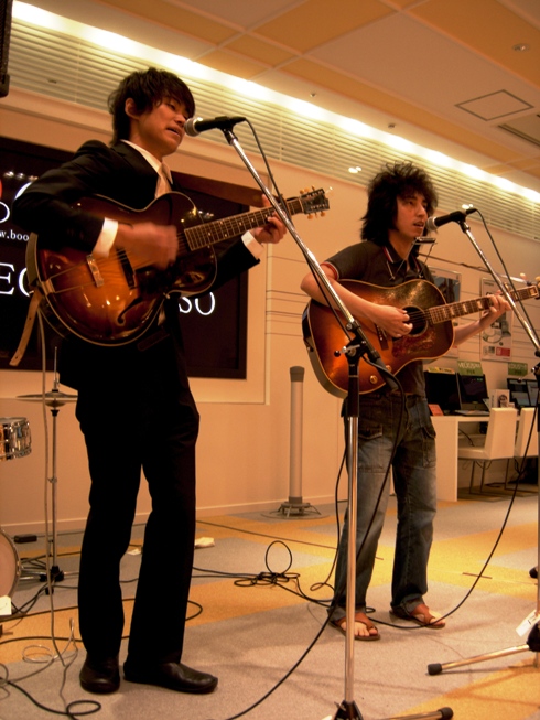 NTTフレッツの方々に「FOR THE DAY ALL DAY」のイメージ映像まで作成していただきました。ありがとうございました。演奏のほうはと言うと5曲演奏し、最後の一曲をタワーレコードさんに捧げました。浮雲さん、秋山さん、代三世界さん、クラシックスさん、ありがとうございました。(西中)
