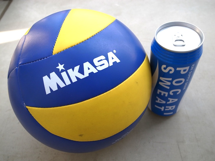ヴァリィ・バルは、ある時期から色彩化しました。かつては、ミカサといえば、純白でした。青/黄は、いかにもださいです。しかし、白が手に入りにくいのでいたしかたありません。ただし、ポカリ・スゥエトの色との相性は悪くありません。というよりも、ポカリ・スゥエトのディザインが、スポーツ界のさまざまなもののディザインに多大な影響をおよぼしました。